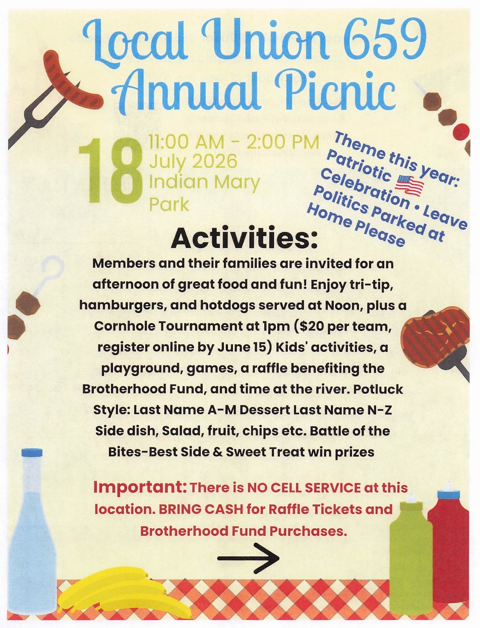 OPT IN to receive Text messages of upcoming meetings, notification of dues and other LU 659 news. Stay Connected!!