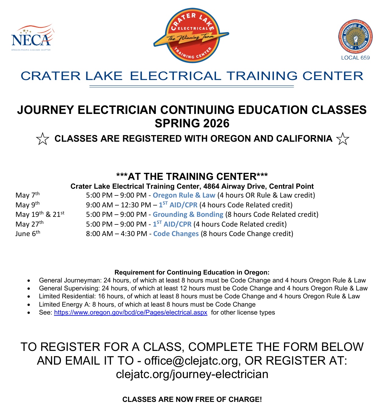 Spring 2026 Journey Electrician Continuing Education Classes